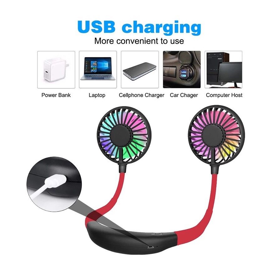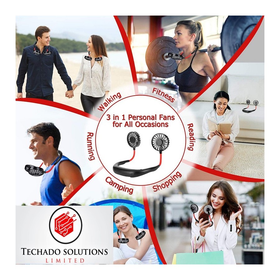 Wearable and desktop inbuilt battery fan. Recharge and Go!