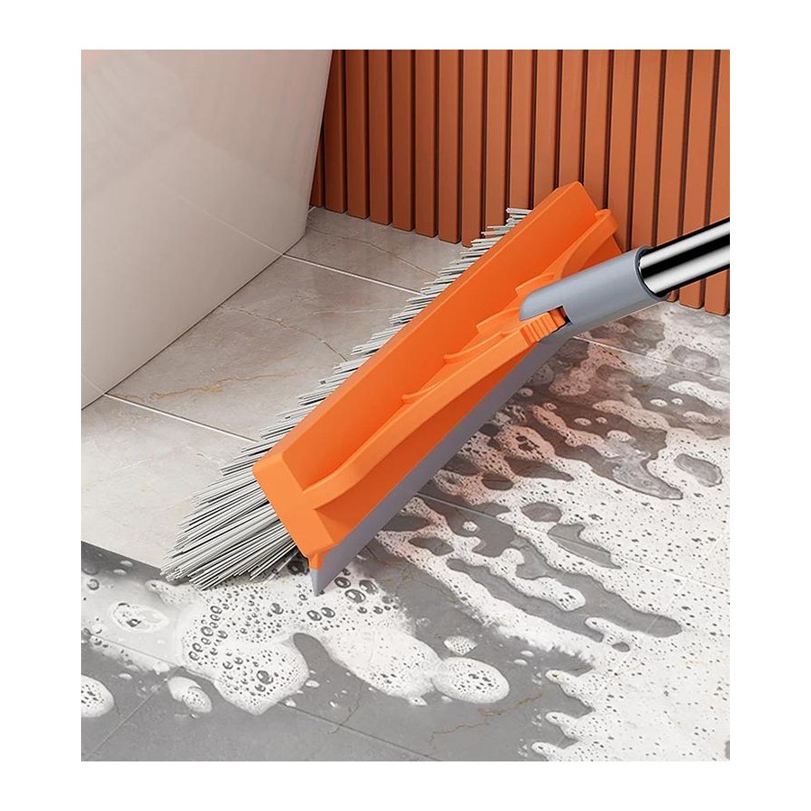 built-in squeegee scraper can push water out and squeegeeing. 3-in-1 floor scrubber scrub brush with a long handle for scrubbing.